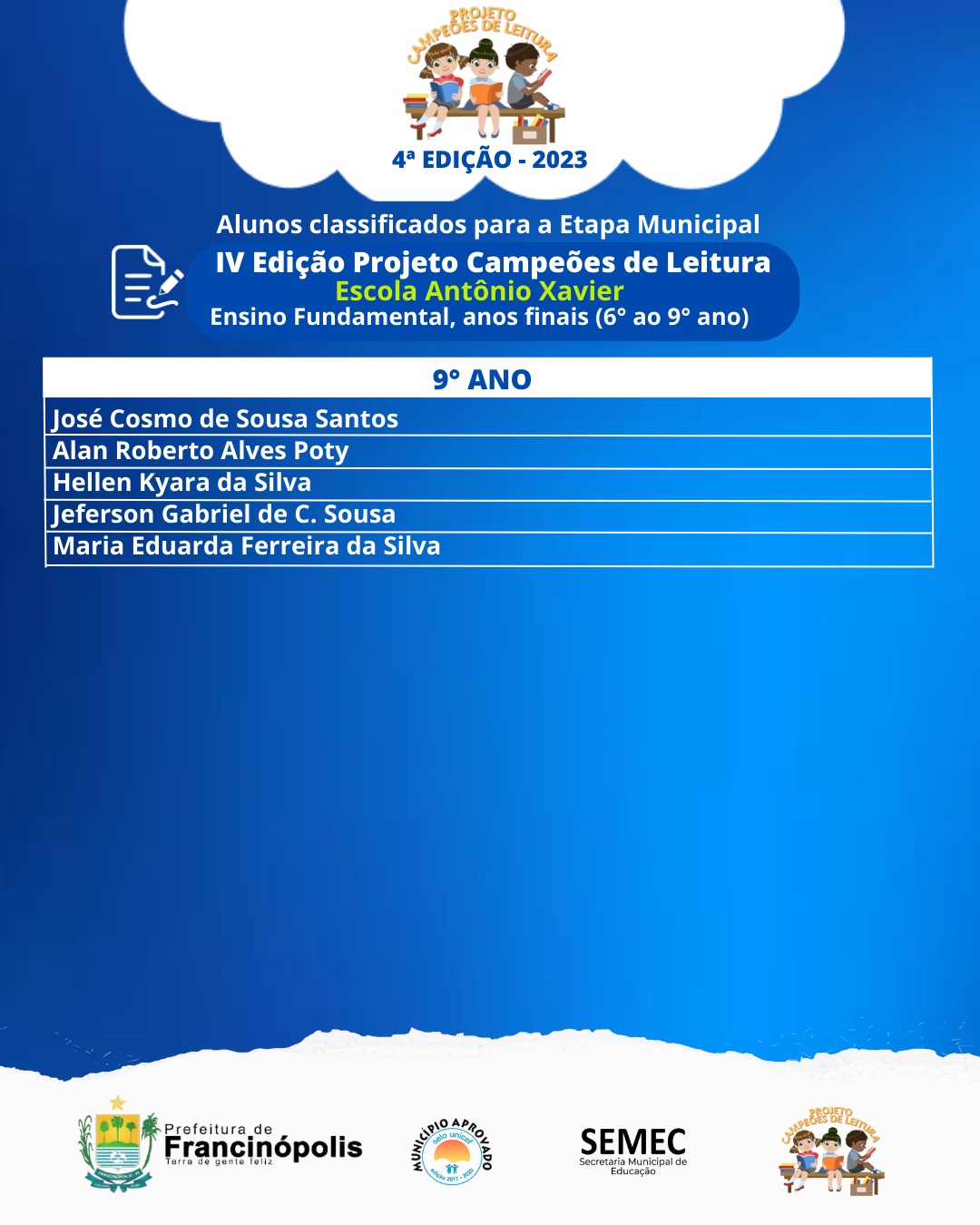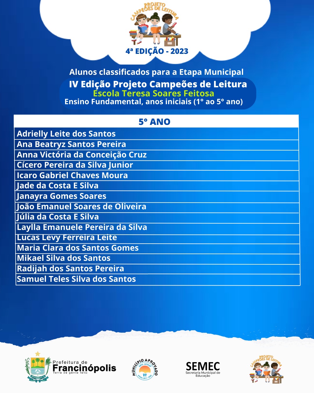 O resultado final do Projeto será divulgado durante a 5ª FLIF – Feira Literária de Francinópolis.