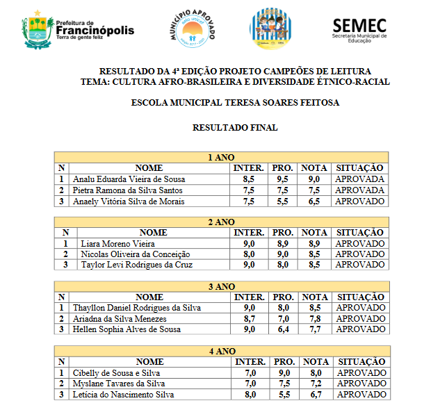 Prefeitura de Francinópolis realiza 2ª etapa do Projeto Campeões de Leitura, com foco na cultura afro-brasileira e diversidade étnico racial.