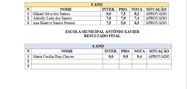 A 1ª etapa foi realizada entre os dias 18 e 20 de outubro, nas escolas da rede municipal de ensino - Teresa Soares Feitosa e Antônio Xavier.