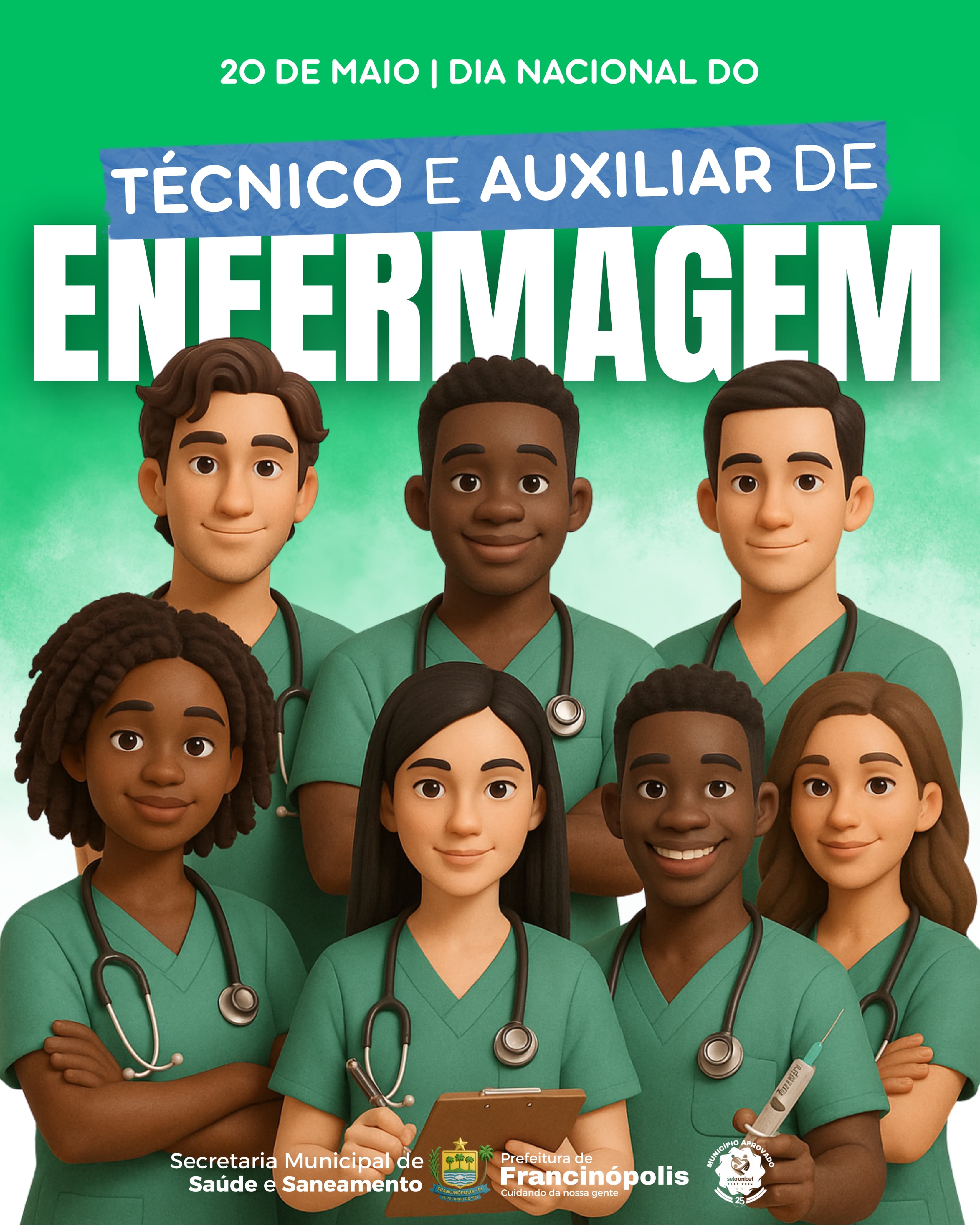 A Prefeitura de Francinópolis através da Secretaria Municipal de Saúde e Saneamento presta uma homenagem especial a todos os técnicos e auxiliares de enfermagem que atuam no município, seja na atenção básica, nos atendimentos de urgência ou no suporte diário às equipes de saúde.